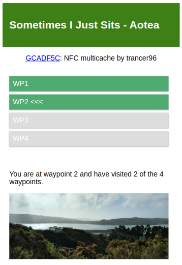 Each waypoint of the multicache has an NFC tag attached to a seat somewhere. If you have a phone that has NFC support, you just touch the back of your phone to the tag and some magic happens. Once you've done that at all 4 waypoints you get to see the final coords of the cache. How does that work? If you don't care and just want the magic to happen then head off to WP1 and give it a go. If you want to know what's happening then read on.